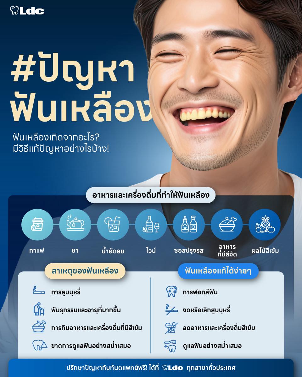 📍 ฟันเหลืองอาจเกิดได้จากหลายสาเหตุ เช่น
