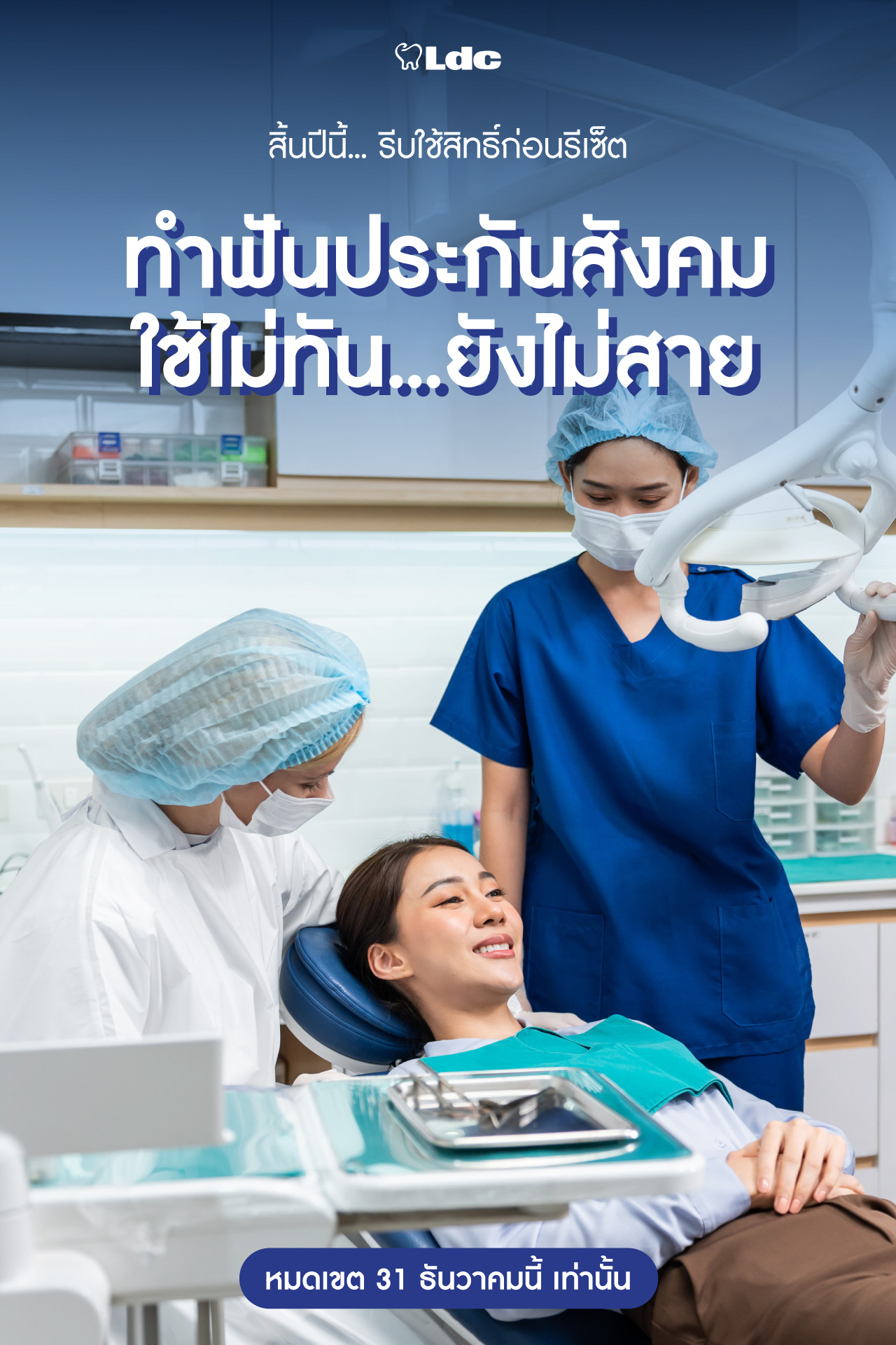 รีบมาใช้สิทธิ์ก่อนหมดปี ดูแลรอยยิ้มให้สุขภาพดีไปด้วยกันที่ LDC Dental นะคะ 💙